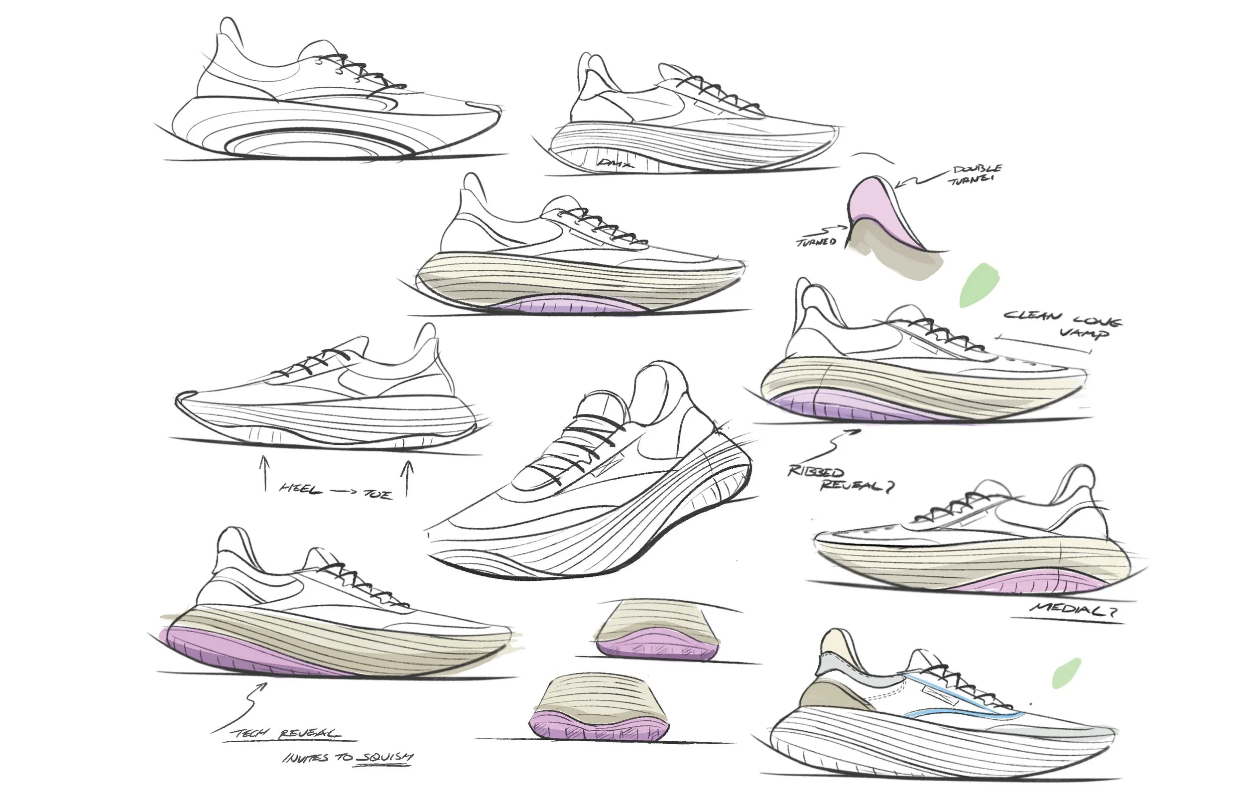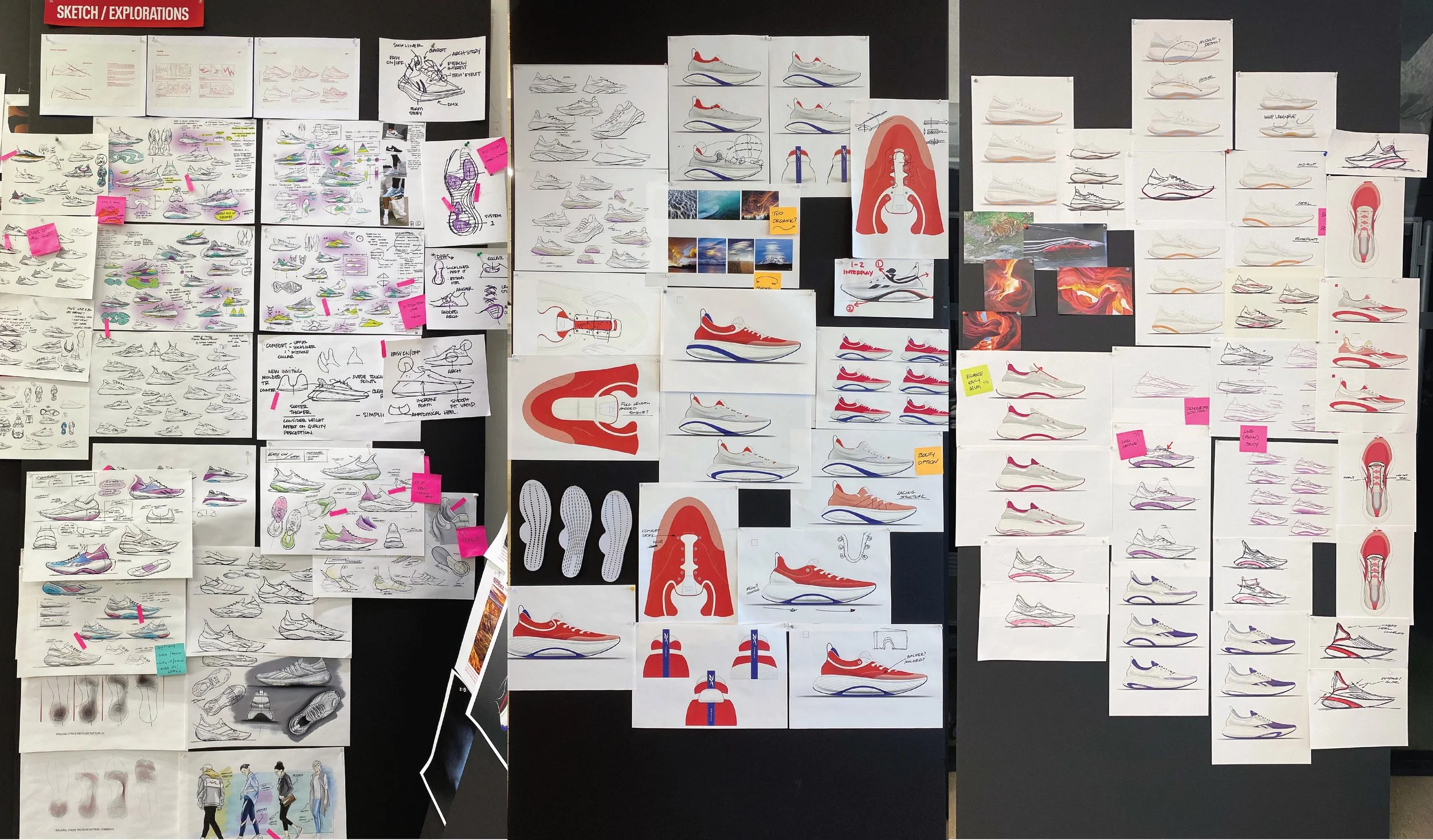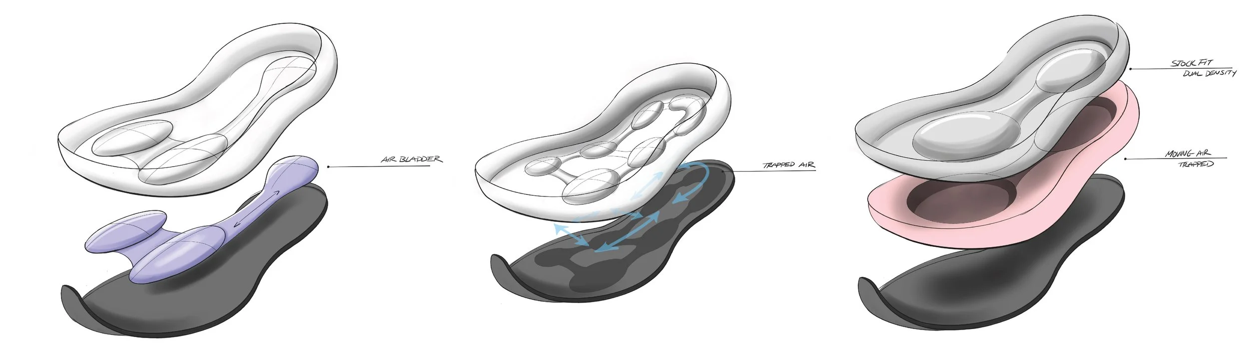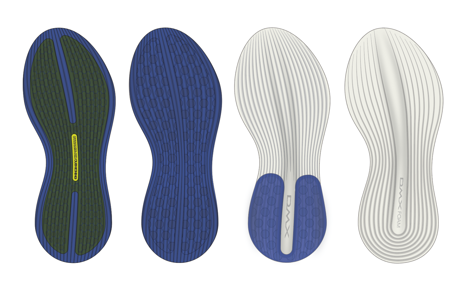 Utilizing the resources we had to revolutionize the DMX technology we were able to explore different ways to create moving air in the midsole. Some involved: trapping the air between the EVA and the midsole, creating moving air channels through co- molding, and sandwiched EVA air capsules