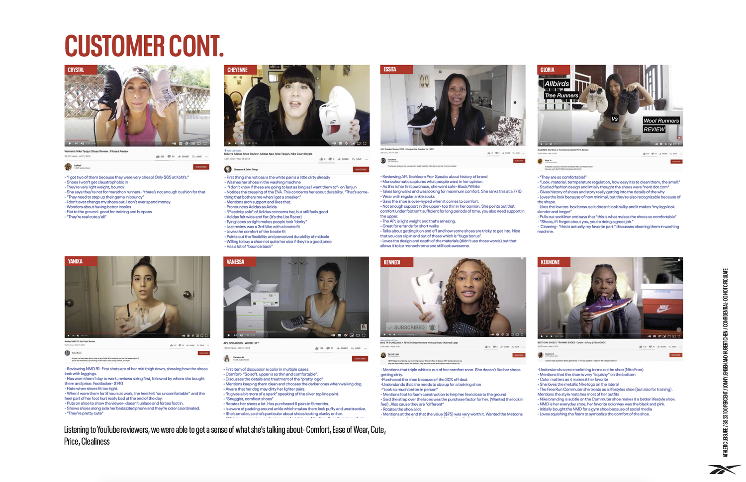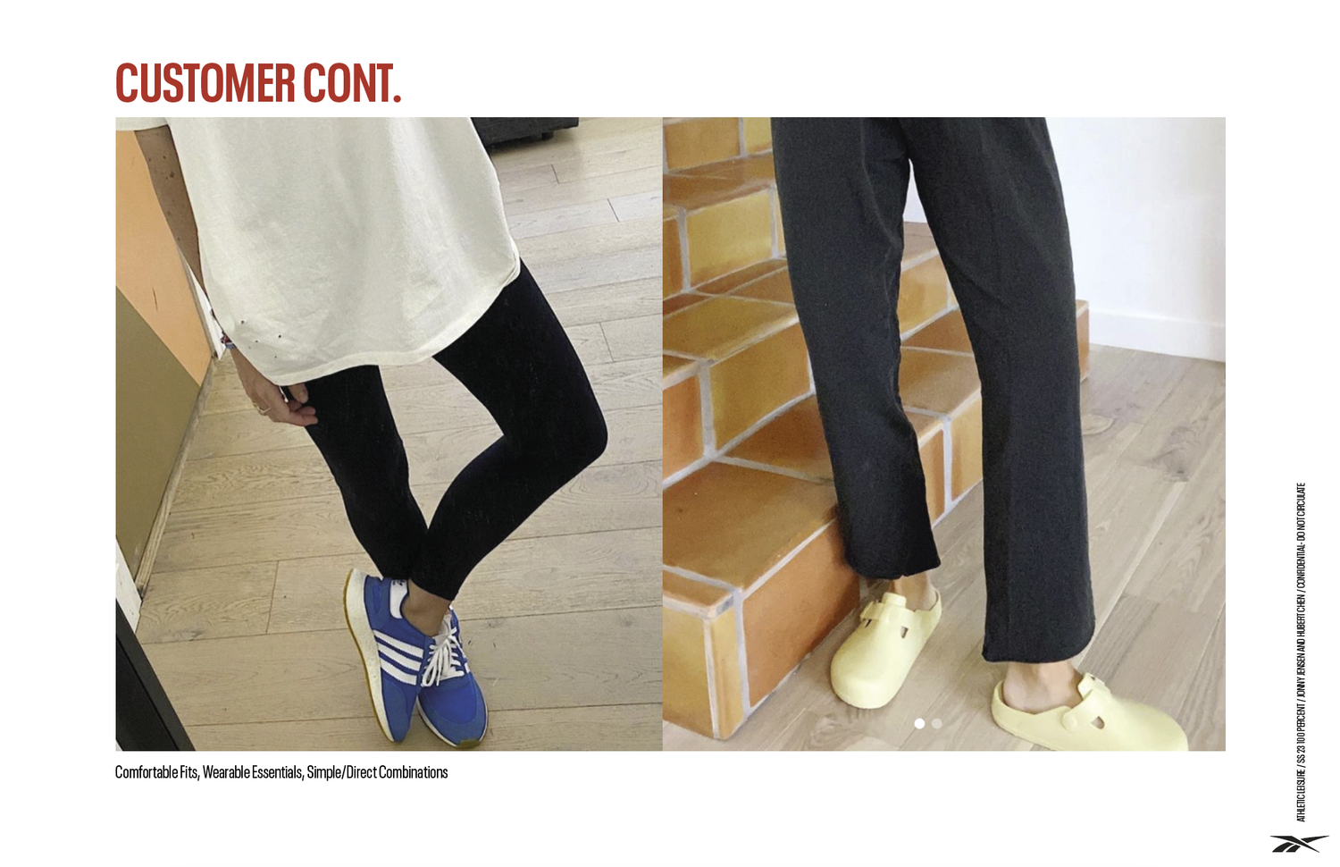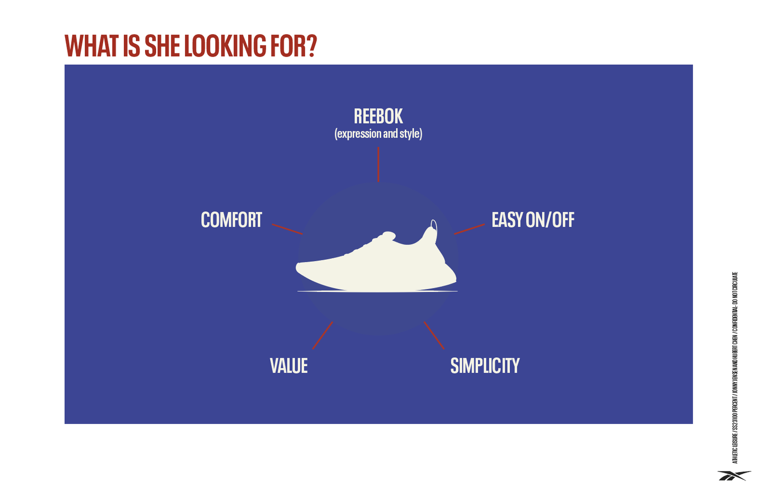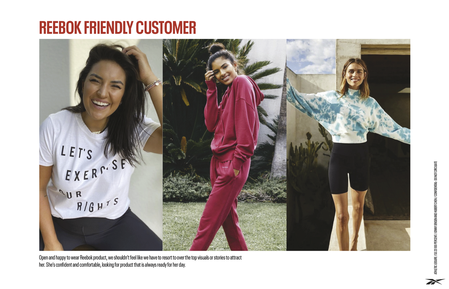 Before diving into the task of designing an entire new range for Reebok’s athleisure category, it was important to identify the consumer, ethos, and design inspiration. Below was the deck built for an early presentation to our vertical and the leadership team at Reebok.