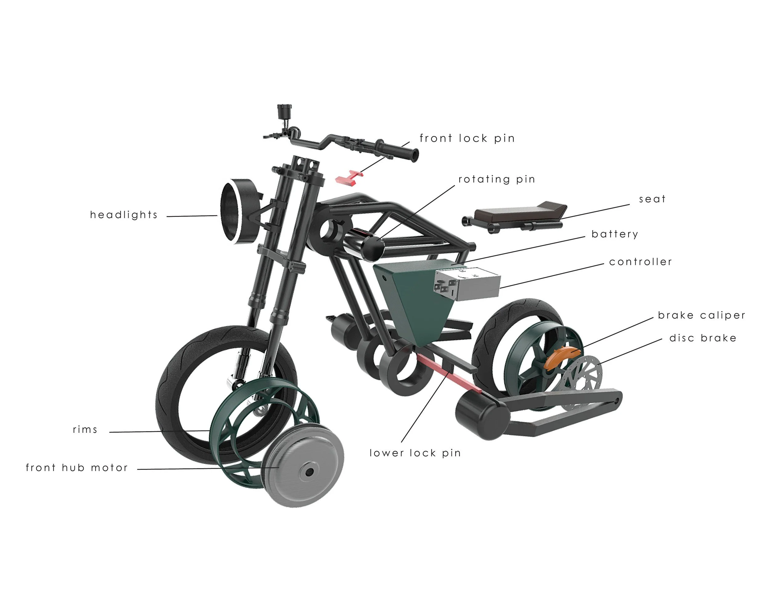 An exploration of mobile versatile transportation. Taking inspiration from transformative products and applying it to an electric bike.